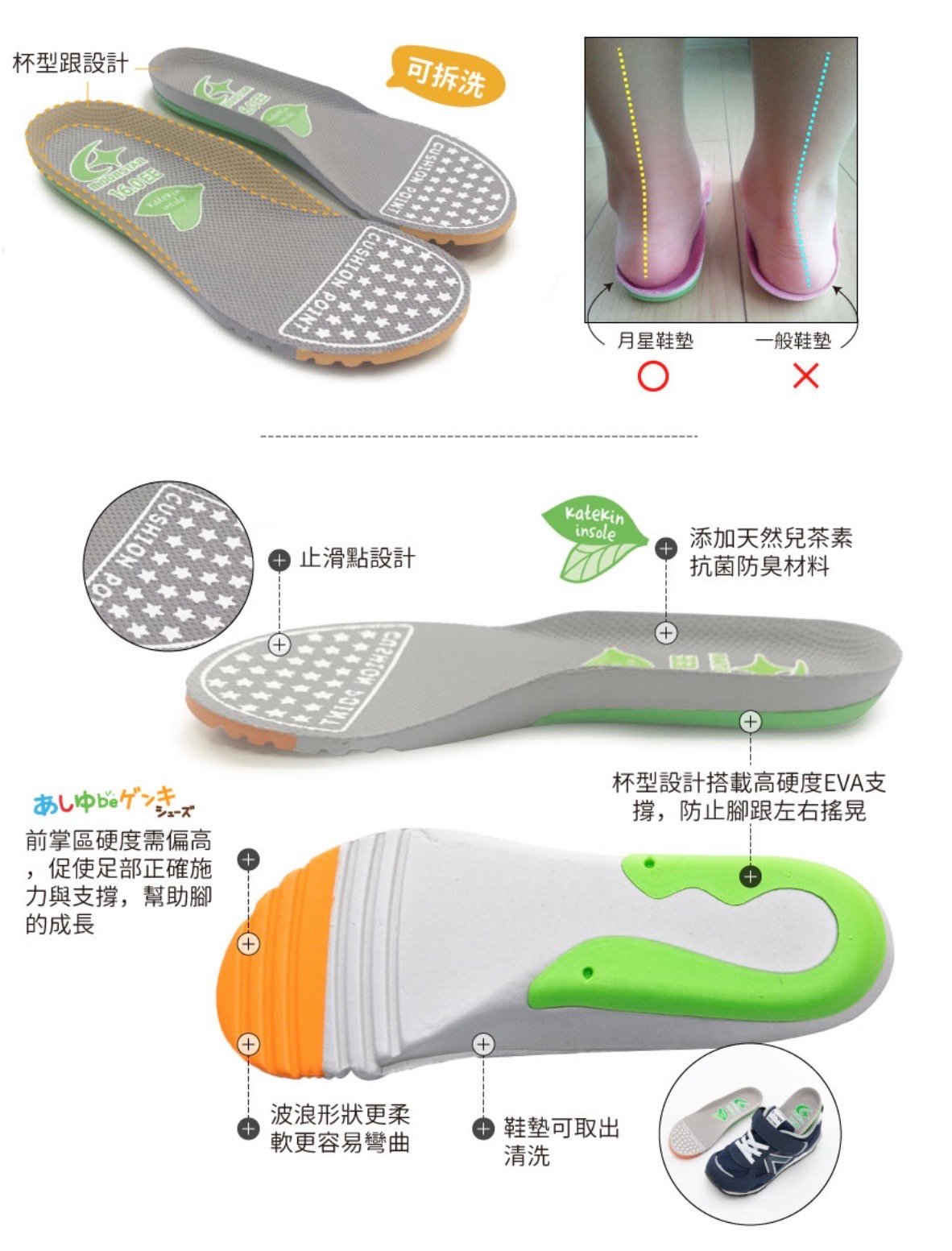 【可水洗鞋墊】此鞋墊貼合腳底,可取出清洗,保持鞋子內部清潔